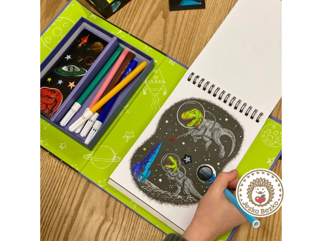 Táto súprava obsahuje pestrofarebné fixky a zábavné samolepky, ktoré zvýraznia akékoľvek umelecké dielo a dodajú mu dodatočnú hernú hodnotu. Vďaka kontrastnému čiernemu pozadiu na ilustrovaných stranách je vyfarbenie naozaj pôsobivé.