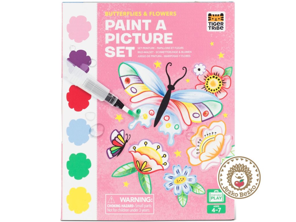 Nádherný úvod do maľovania pre malých umelcov s kreatívnou sadou Tiger Tribe Paint A Picture Set. Je vybavený vodným štetcom a pigmentovými farbami. Magnetický uzáver umožňuje úhľadné balenie na konci hry.