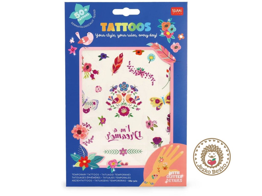 Dočasné a super ľahko aplikovateľné tetovania Legami veľmi šetrné k pokožke a odolávajú vode aj potu.