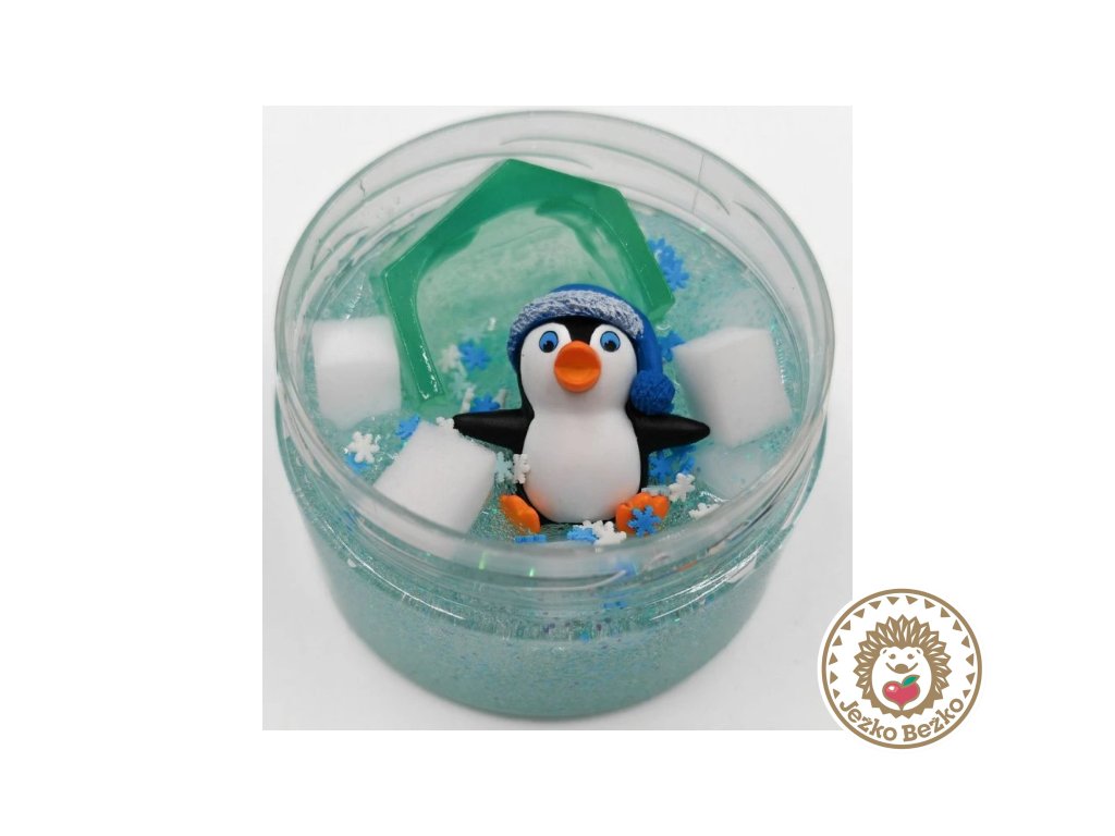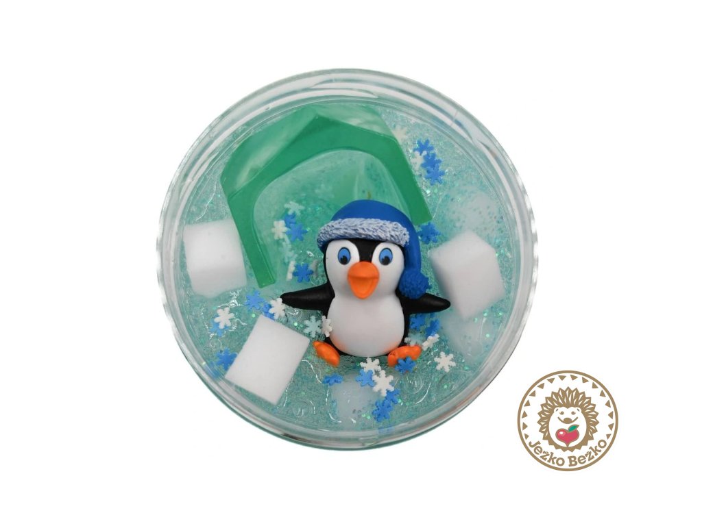 Priehľadný gélový sliz s trblietkami, konfeti a malou figúrkou tučňáka — ideálny na natahovanie, mačkanie a tvarovanie. Sliz je mäkký, tvárny a dobre sa tvaruje, čo podporuje zmyslovú a kreatívnu hru.