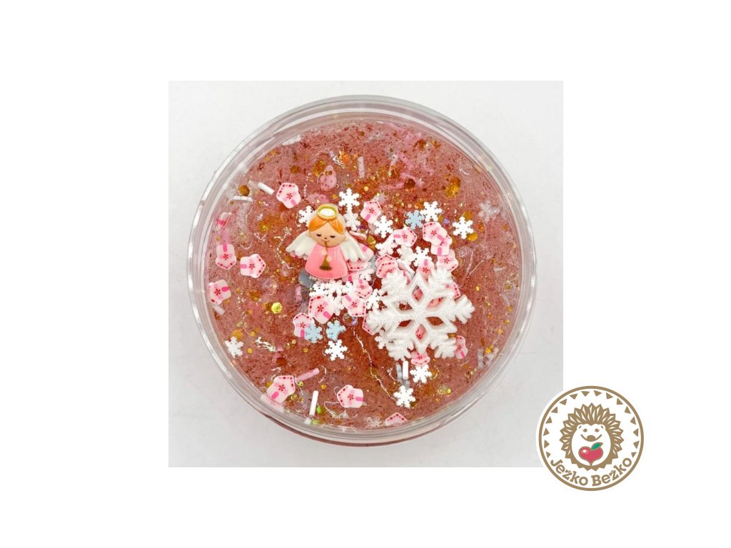 Sliz s jemnou gumovou konzistenciou, ktorá je pružná, natiahnuteľná a vhodná na tvarovanie — ideálna pre kreatívnu aj relaxačnú hru. Sliz má jemné trblietky, dekorácie a tematický motív anděla, čo dodáva hre kúzelnú, zimno‑sviatočnú atmosféru.