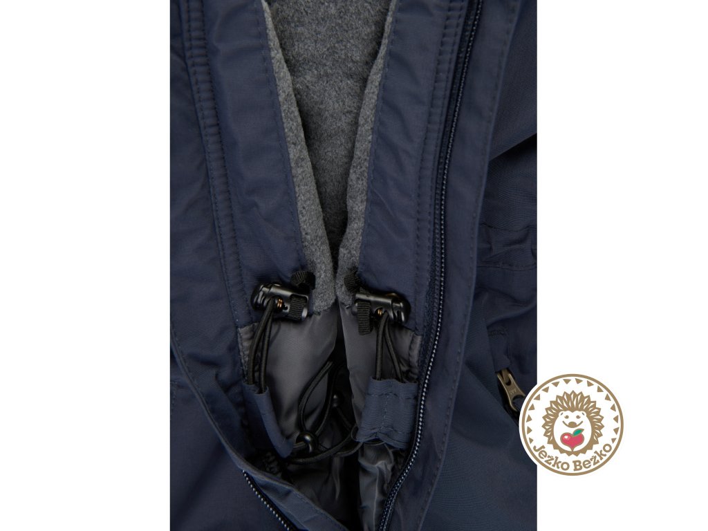 Kapucňa je odnímateľná a tak bezpečná napr. pri prichytení o strom, odnímateľná je aj umelá kožušinka po obvode.