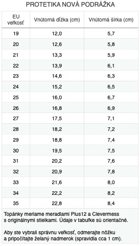 | Typ nohy: | Dominantný palec, Normálna, Úzka päta, Vyšší priehlavok |