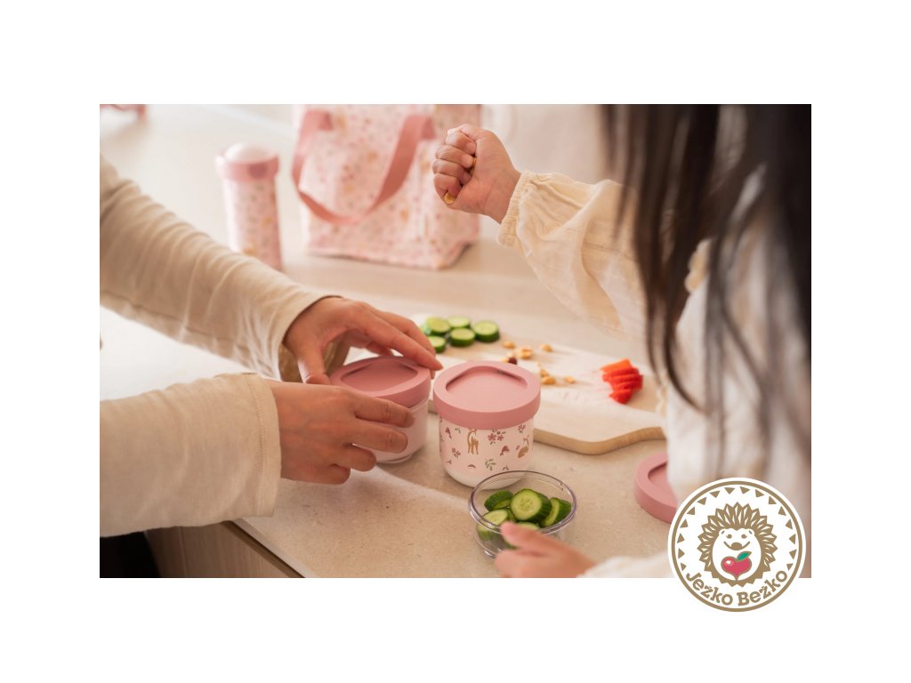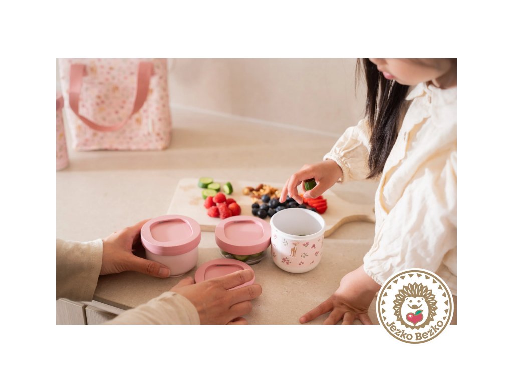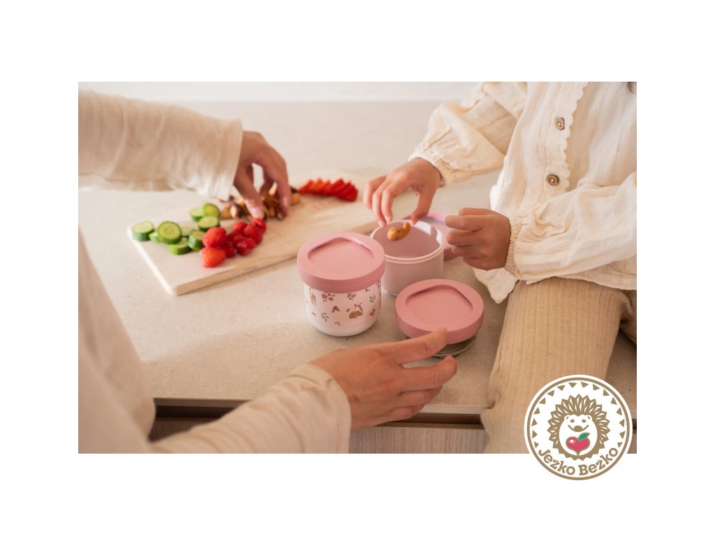 Tri praktické stohovateľné tégliky s viečkami sú ideálne na oddelené uloženie jednotlivých častí detskej desiaty. Spoľahlivé tesniace viečko chráni obsah pred vysypaním. Pre ľahké prenášanie sa tri tégliky pevne zacvaknú k sebe. Tégliky využijete na prechádzkach, výletoch aj doma.