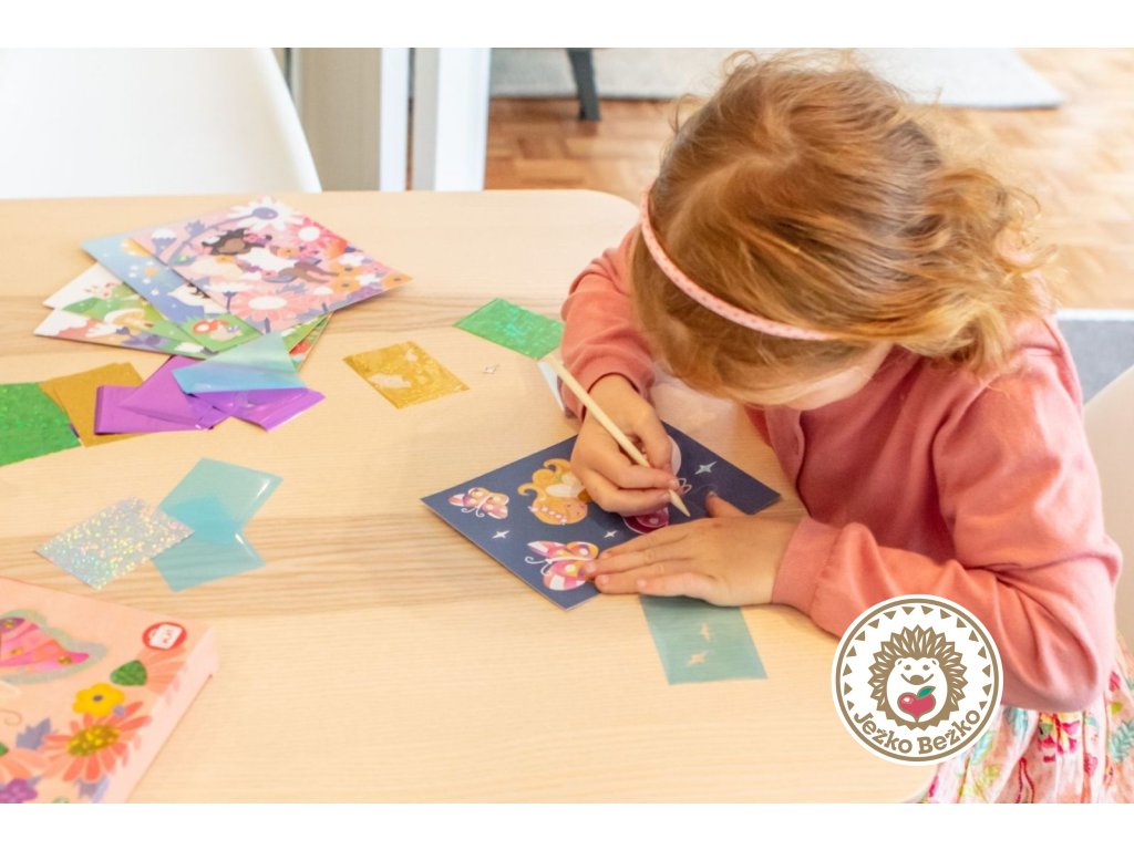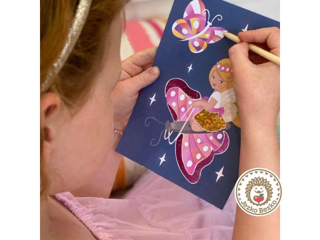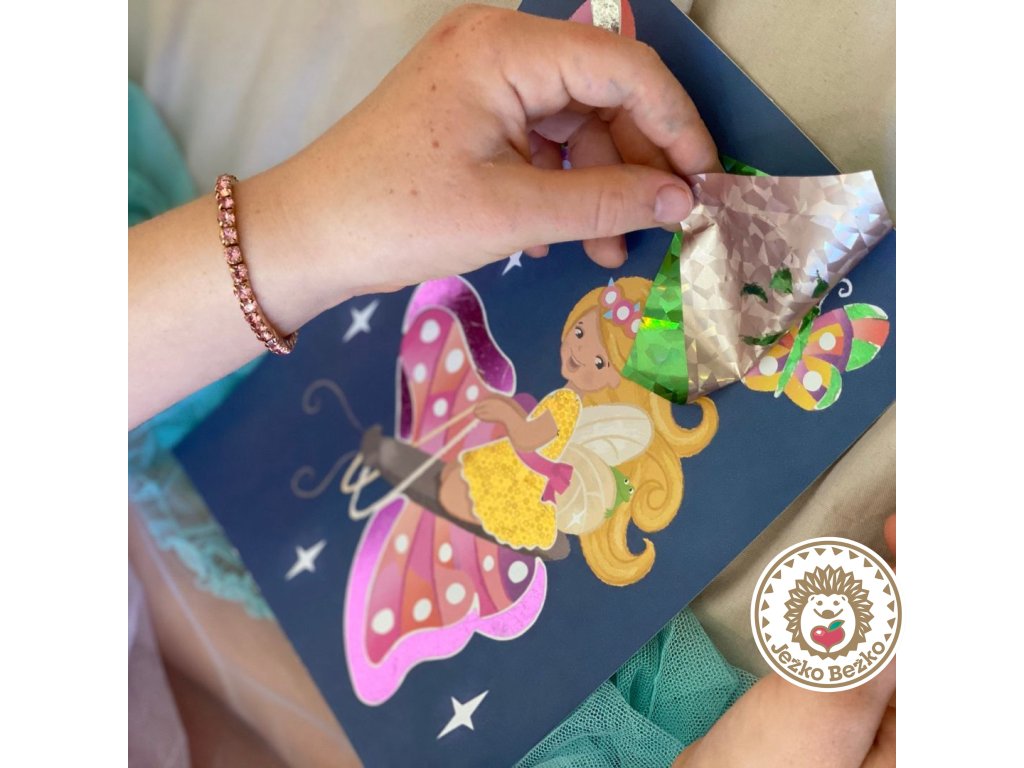 Motýlie krídla, okvetné lístky a víly čakajú na to, aby ste ich rozžiarili priloženými trblietavými fóliami. Jednoducho vezmite list fólie, nalepte fóliu na lepiacu časť, prejdite drevenou ceruzkou po podklade a voilá! Odstráňte zvyšok fólie. Tieto prémiové sady sú navrhnuté na prenosné hranie bez neporiadku.