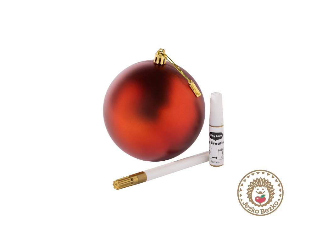 Obsah balenia: vianočna guľa z vysoko kvalitného plastu, zlatá farba v tube (dermatologicky testovaná), zlatá fixka, návod krok za krokom.