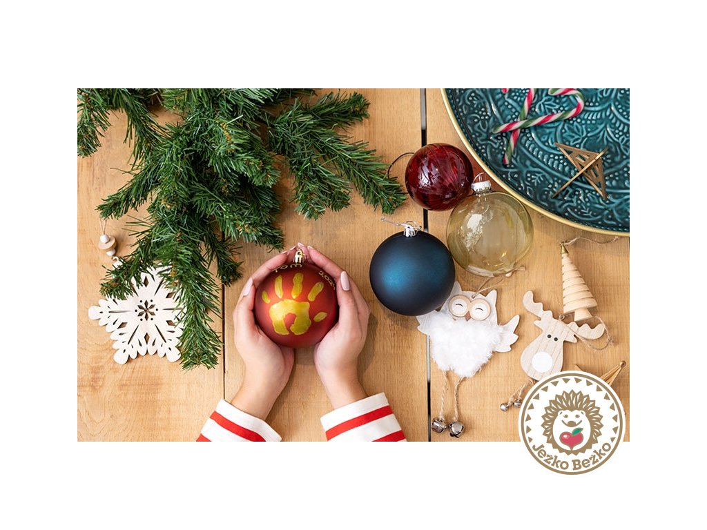 Táto sada umožňuje odtlačiť detskú ručičku na vianočnú guľu a vytvoriť tak jedinečnú pamiatku na prvé sviatočné chvíle.
