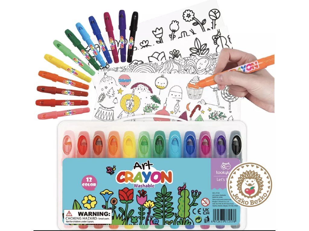 TOOKY TOYS JEMNÉ VOSKOVKY UMÝVATEĽNÉ V PRAKTICKOM OBALE - 12 KS S PREDLOHAMI