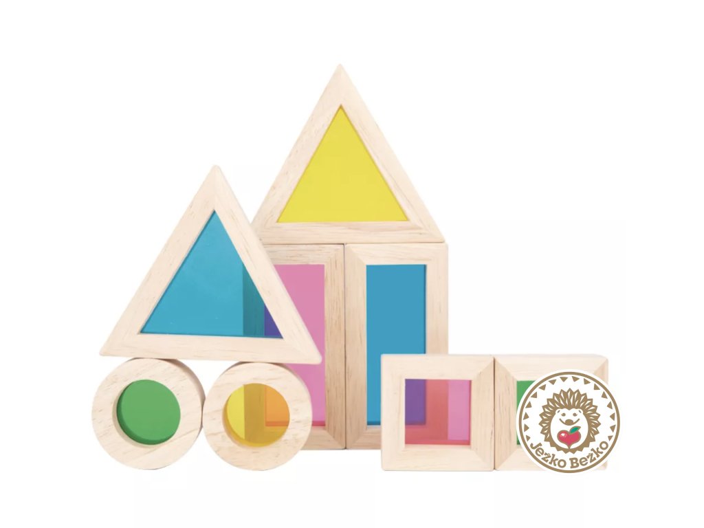 Drevená hračka, ktorá deti oboznámi s farbami a geometrickými tvarmi, ktoré môžu ukladať na seba alebo pevnú podložku.